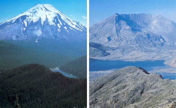 5. Американський вулкана Сент-Хеленс до і після виверження в 1980 році