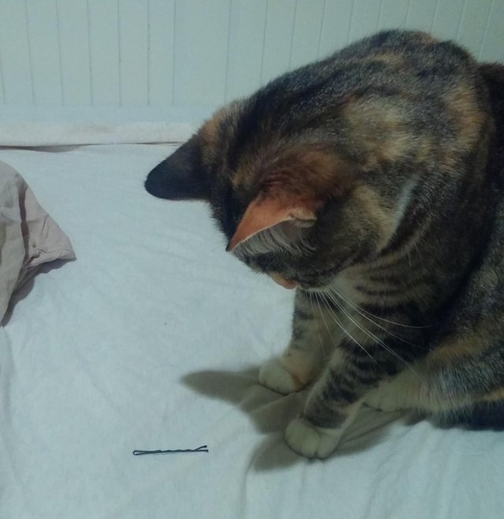 «Ми з котом довго жили одні, і ось вчора у мене ночувала дівчина. Реакція кота на жіночу шпильку»