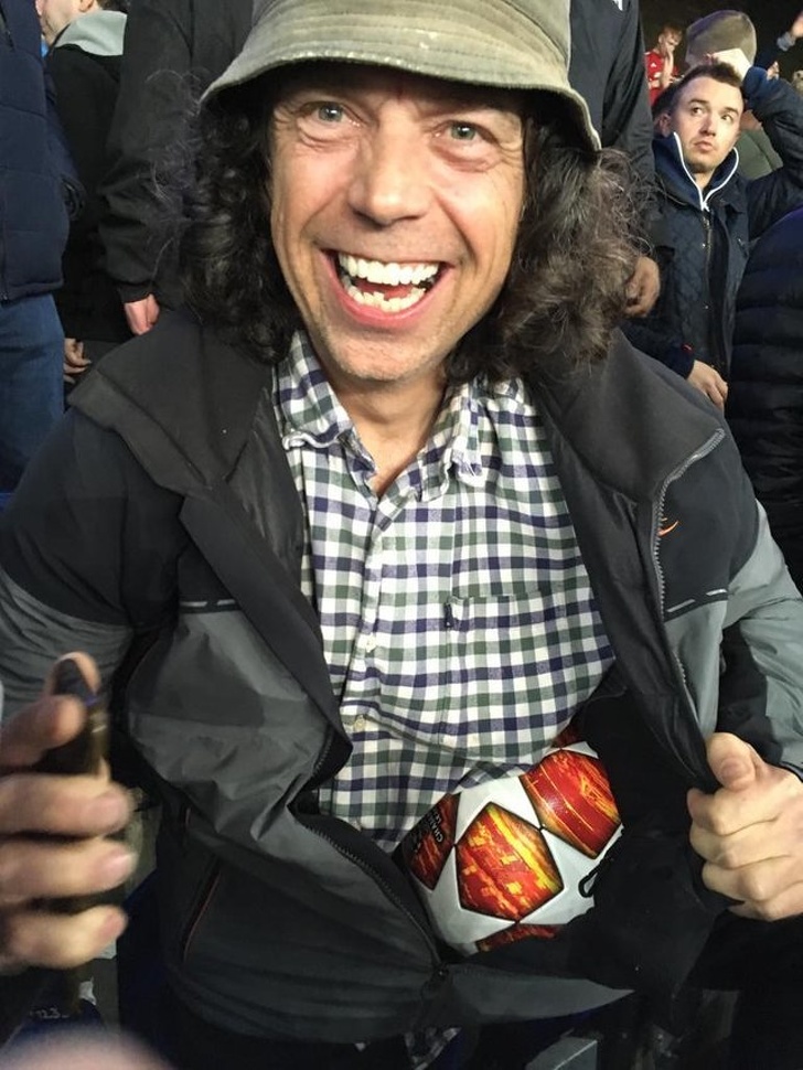 «Мій тато все життя вболіває за „Манчестер Юнайтед“, і сьогодні він нарешті спіймав м'яч на їх матчі!»