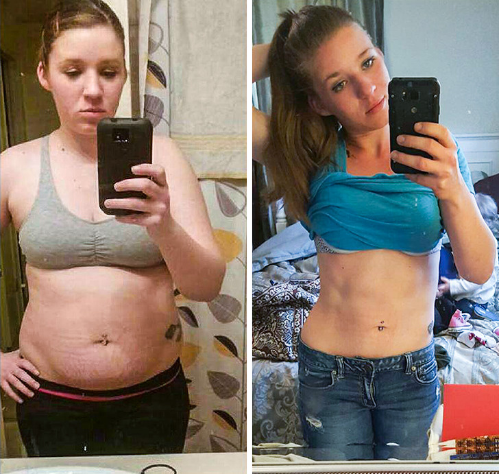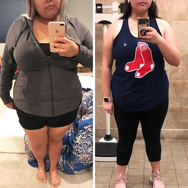 «Фото „до“ я зробила відразу після того, як розлучилася зі своїм колишнім, який знущався наді мною. Моє фізичне здоров'я завжди було відображенням внутрішнього стану. Я стала їсти здорову їжу, тренуватися 4-5 разів на тиждень, пройшла терапію»