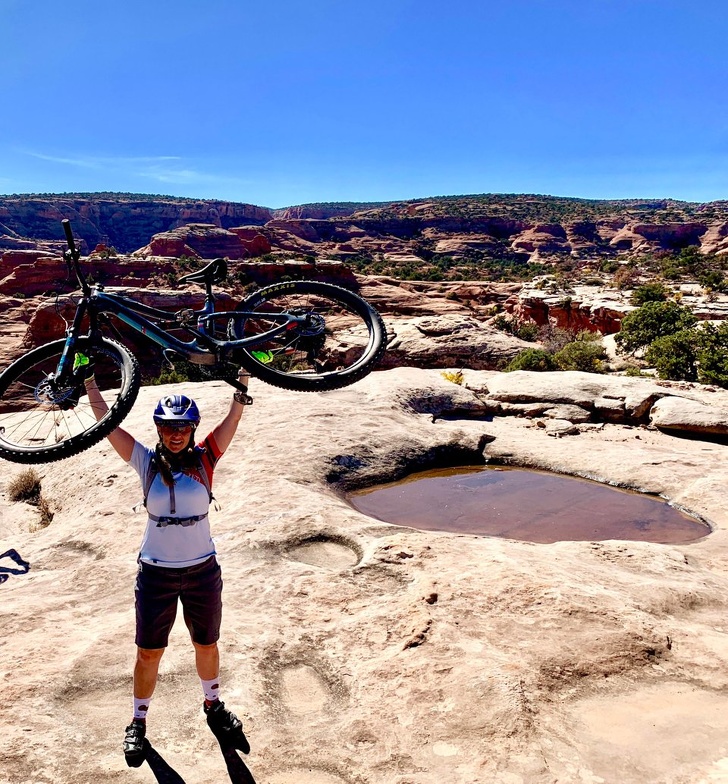 «Рік тому мій дуже болісне розлучення нарешті завершився, я відчувала себе пригніченою і виснаженою. Через півроку я усвідомила, що мені потрібно знову почати крутити педалі, і купила великий. На цьому фото я під час першої подорожі в Моабіт. Я така щаслива!»