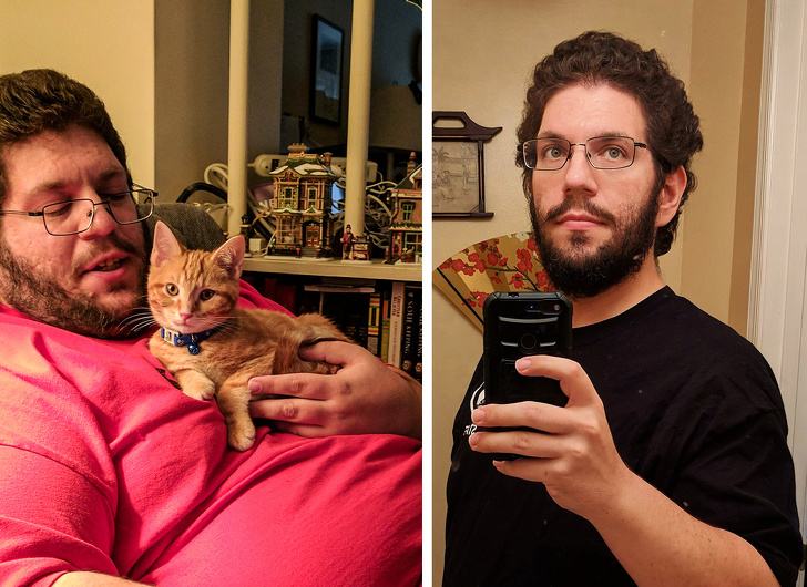 «Ці два роки були дуже неспокійними для мене. Я почав худнути, потім розлучився, але не дозволив цього зупинити мене. За 2 роки скинув 100 кг. Так, рудий кіт теж у повному порядку»