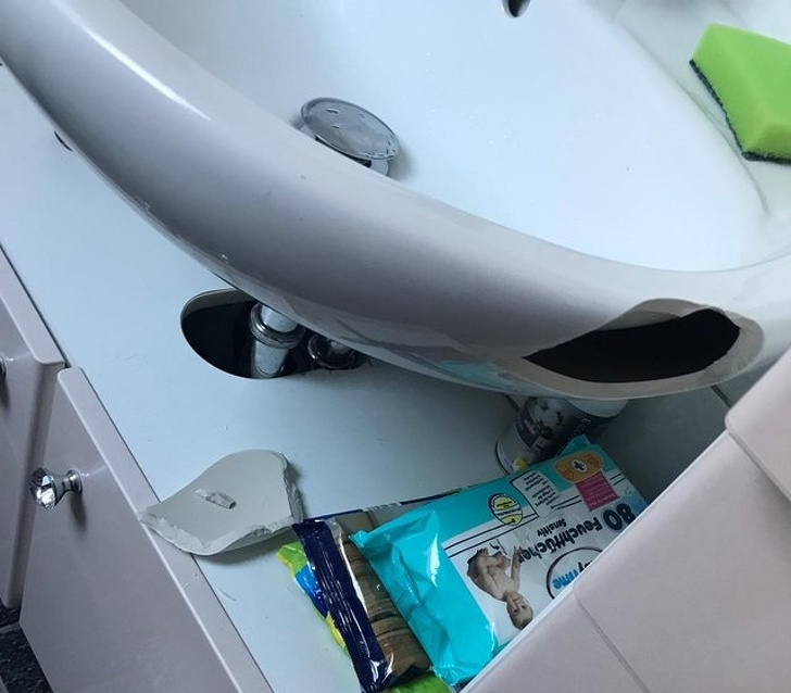 «Моя дівчина випадково впустила парфуми за € 2. Як не дивно, духи залишились цілі, на відміну від раковини»