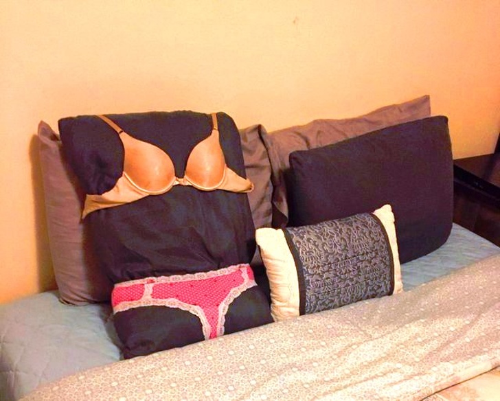 9. «Моя дружина їде на декілька місяців. Ось як вона підготувала до цього нашу ліжко»