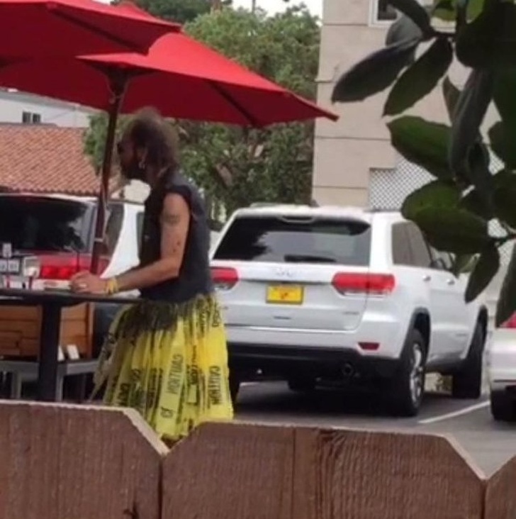 Цей хлопець має сигнальну стрічку з написом «Обережно!» як кілт