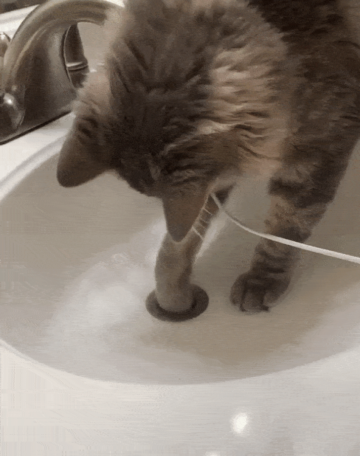 Бонус: «Місяць тому впустила перстень і шпильку для волосся в раковину. Побоялася діставати: раптом проваляться ще глибше. Ви тільки подивіться на мою кішку, як легко вона витягла їх!»