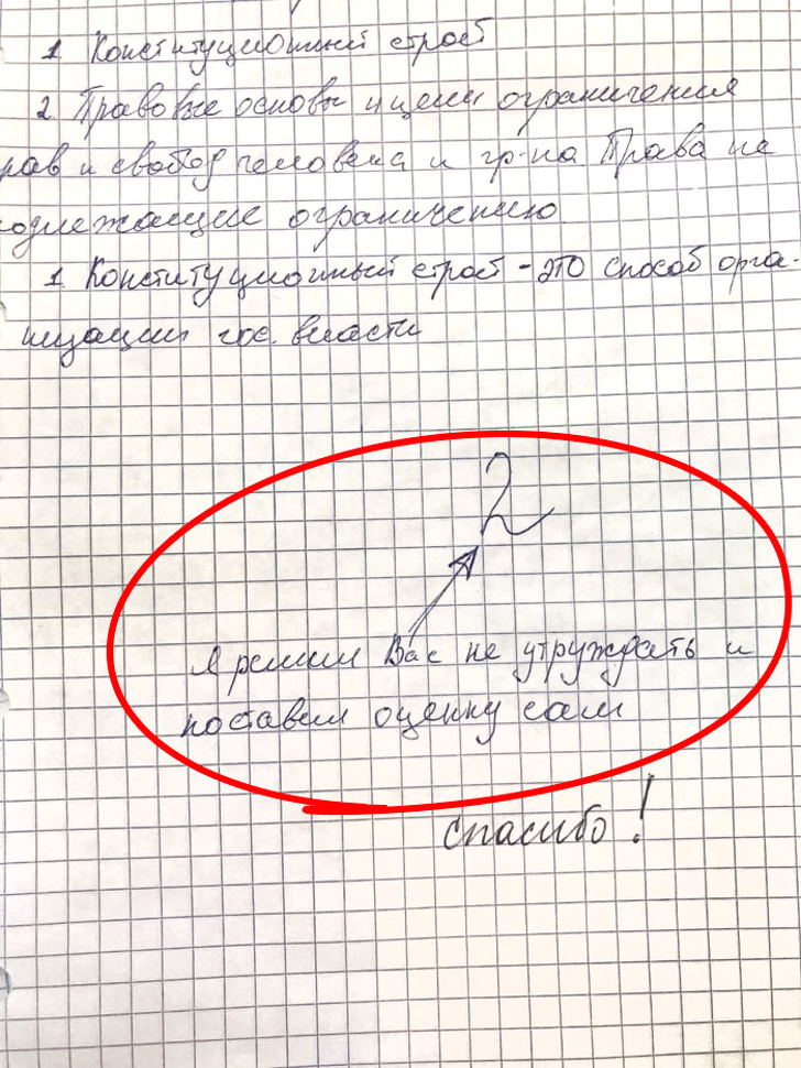Вчитель сказав: ви можете взяти шпаргалку на аркуші паперу, исписанном з одного боку