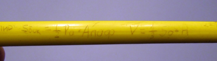 «Ночі перед іспитом зрозумів, що не пам'ятаю формули площ фігур. Надряпав голкою на гранях. Під час іспиту просто потер пальцем олівець — і ось вони».