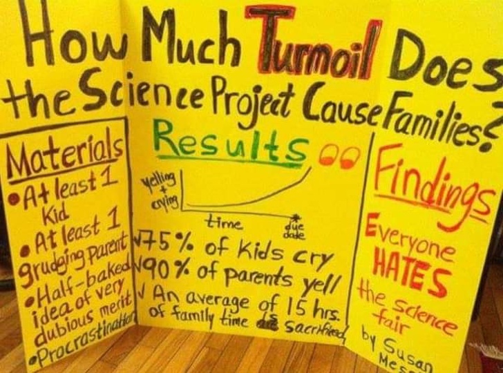 Результати: 75 % дітей плачуть, 90 % батьків кричать, в середньому 15 годин сімейного часу жертвується на проект.