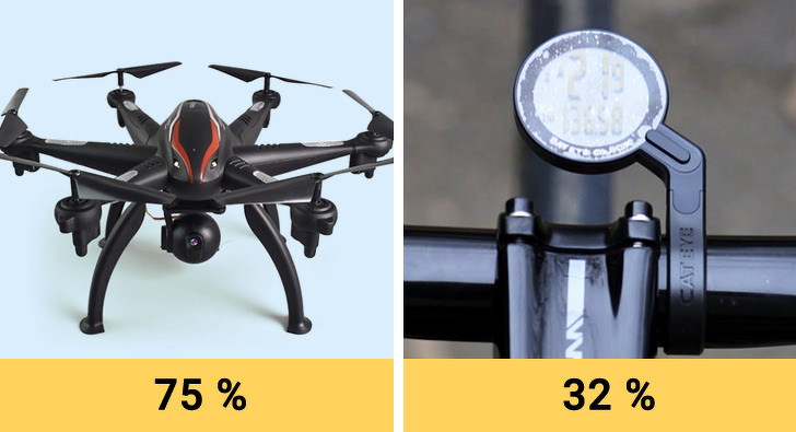 З всіляких гаджетів лідер виявився досить передбачуваний — це квадрокоптер. А чоловіки, які захоплюються велоспортом, не відмовилися б від велокомп'ютера.