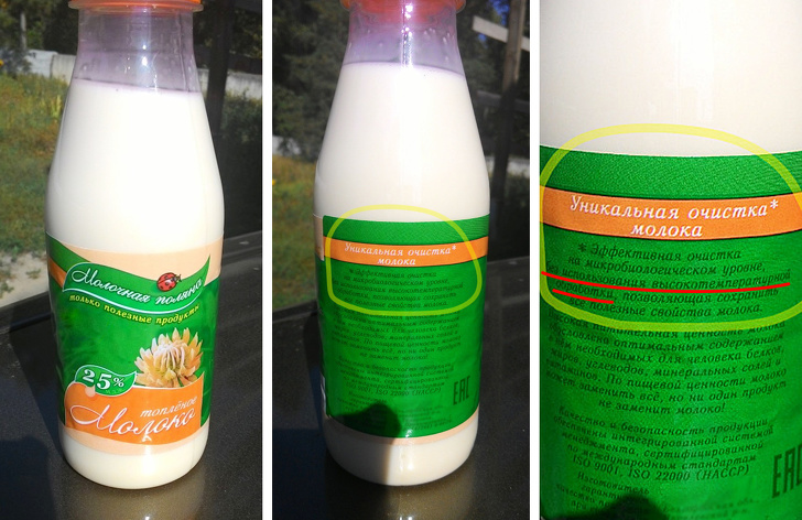 Етикетка на топленому молоці свідчить, що високотемпературна обробка не використовувалася. «Але я завжди вважав, що пряжене молоко виходить шляхом термообробки», — дивується покупець.