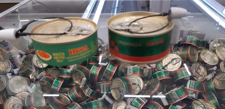 Цінник повідомляє, що на ікру діє акція. Правда, не на всю, а лише на один вид з двох. Тільки ось лежать вони впереміш і вже дуже схожі етикетками.