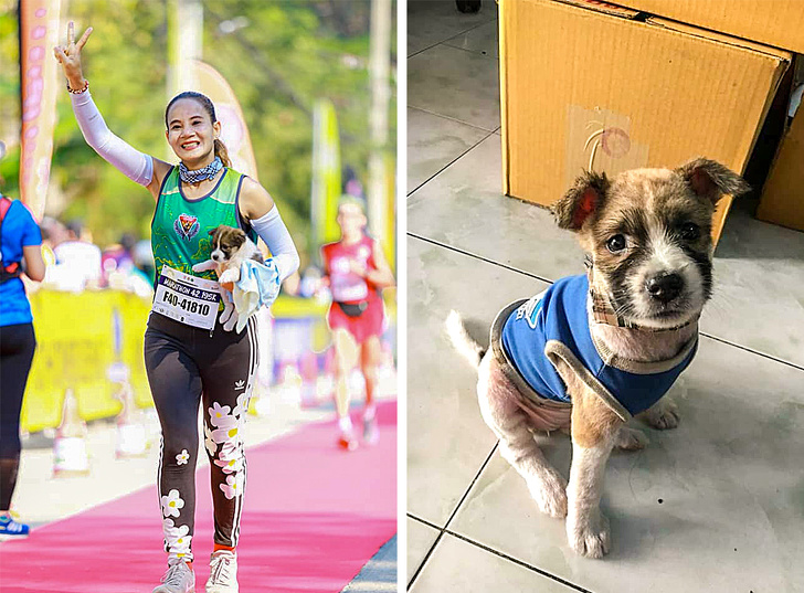 Учасниця марафону пробігла 30 км з цуценям, якого вона підібрала на дорозі. Після марафону жінка його «усиновила»
