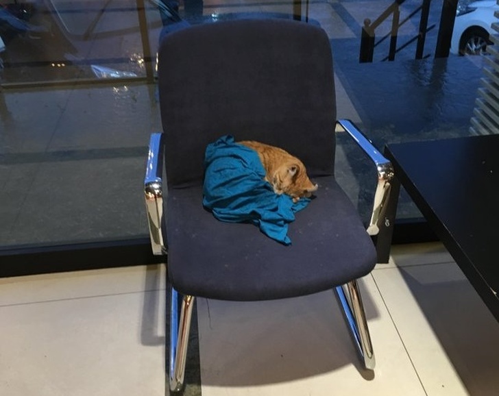 Бездомного кота пустили в приміщення, щоб він не мокнув під дощем