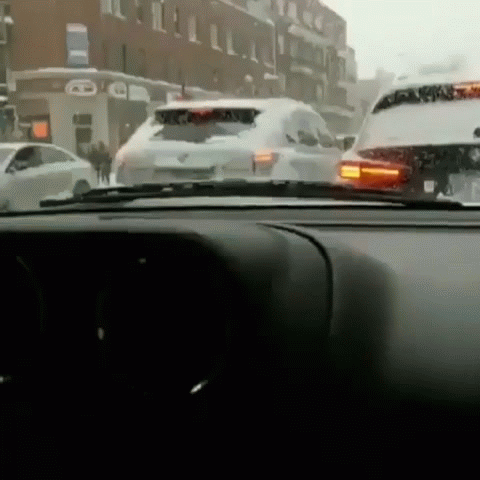 Під час зупинки на світлофорі канадський водій очистив від снігу заднє скло стоїть попереду машини