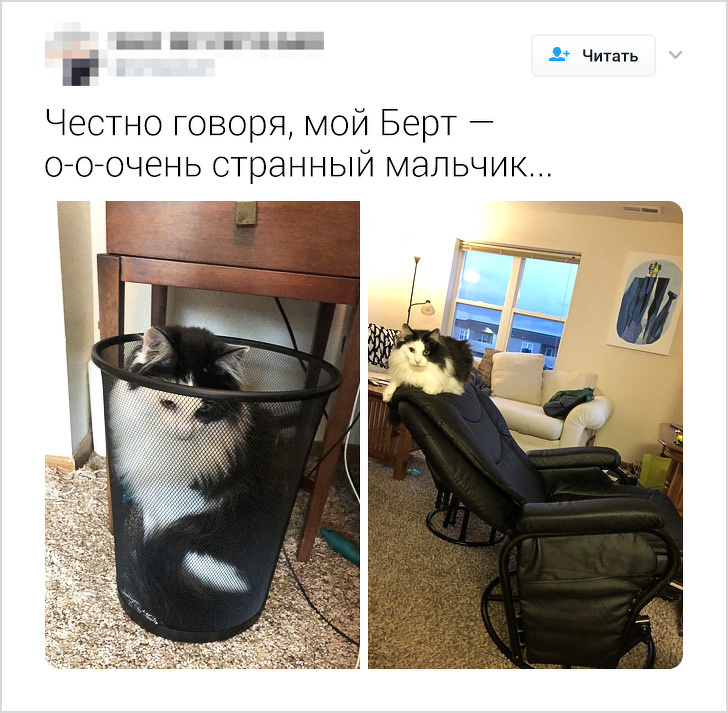 Тред вийшов ілюстрованим, адже практично кожне повідомлення у ньому супроводжувався фотографією. Ми в Social.org.ua досхочу нареготавшись над витівками цих котів і теж поділилися один з одним дивацтвами в поведінці своїх вихованців.