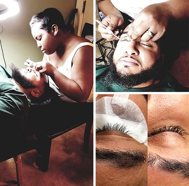 10. Його дівчина навчається нарощувати вії, і він дозволив їй попрактикуватися на собі