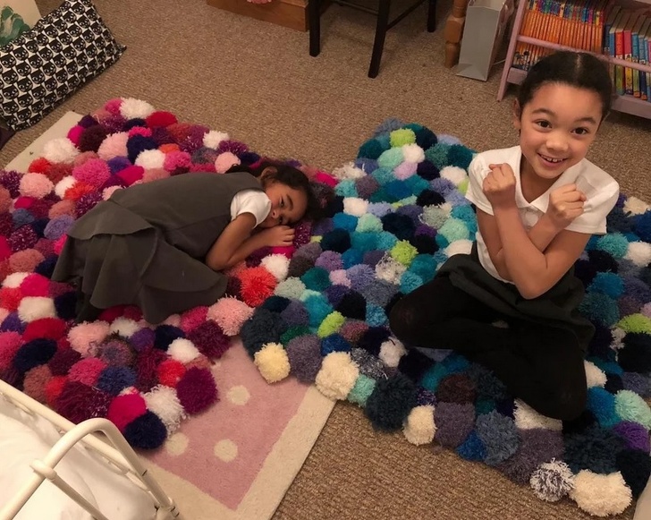 6. «Моя мама зробила онукам по помпоновому плед їх улюблених відтінків. Вони в повному захваті»