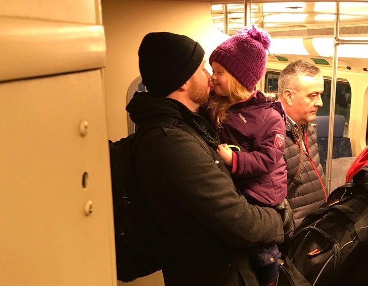 11. «Моя дружина впіймала момент, коли ми з дочкою їхали в поїзді і терлися носами. Ось воно, абсолютне щастя»