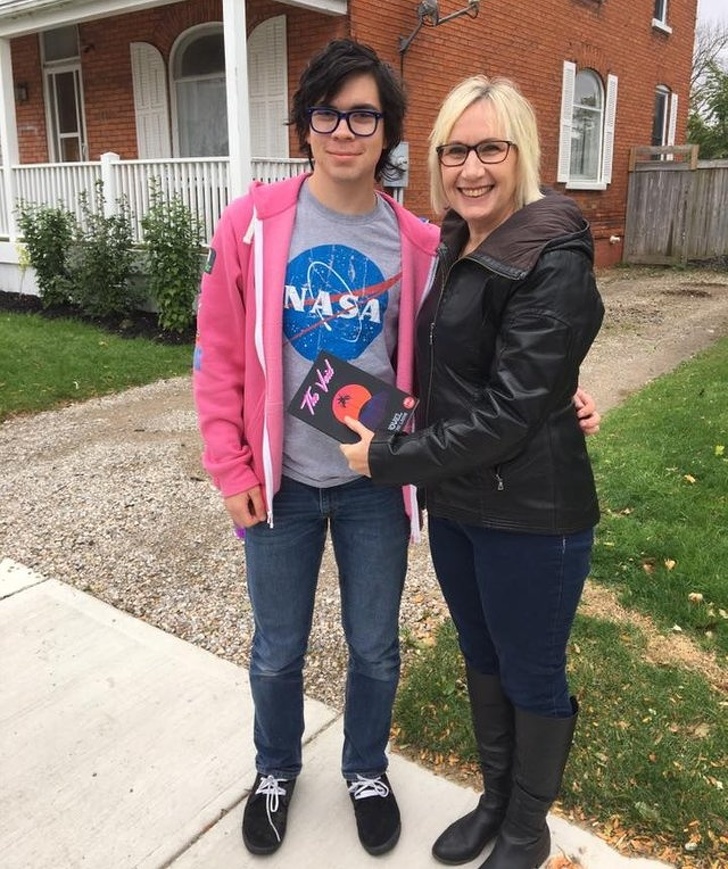 4. «Мій син-аутист знайшов розраду у творчості. Нещодавно він опублікував свою книгу Amazon! На цій фотографії він дарує примірник вчительці, яка допомогла йому на цьому шляху»
