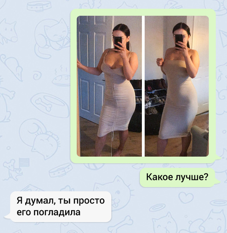 Не варто дивуватися, якщо чоловік не бачить різниці між двома схожими сукнями, які для жінки очевидно різні. Напевно у нього теж є питання до того, як можна чистити машину від снігу лопатою, нескінченно втрачати волосся по всьому будинку і навіщо створювати схованки печива Oreo.
