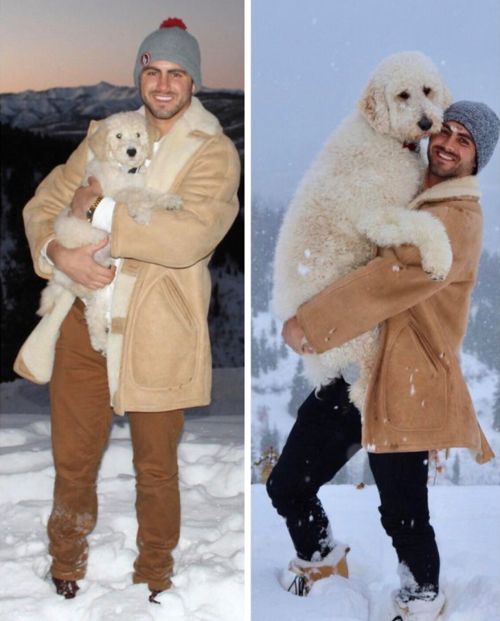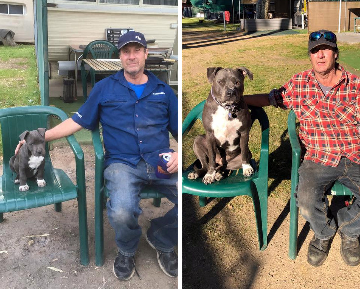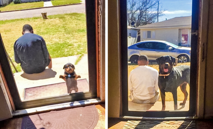 19. «Мій хлопчик Кайзер і я. На фотографії зліва — наша перша зустріч, праворуч — його перший день народження»