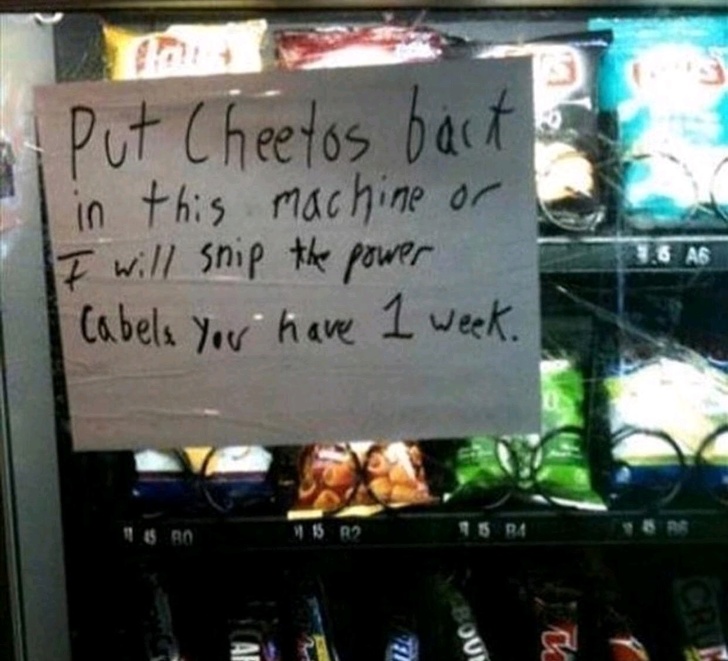 «Поверніть Cheetos в цей автомат, або я переріжу кабель живлення. У вас є один тиждень».