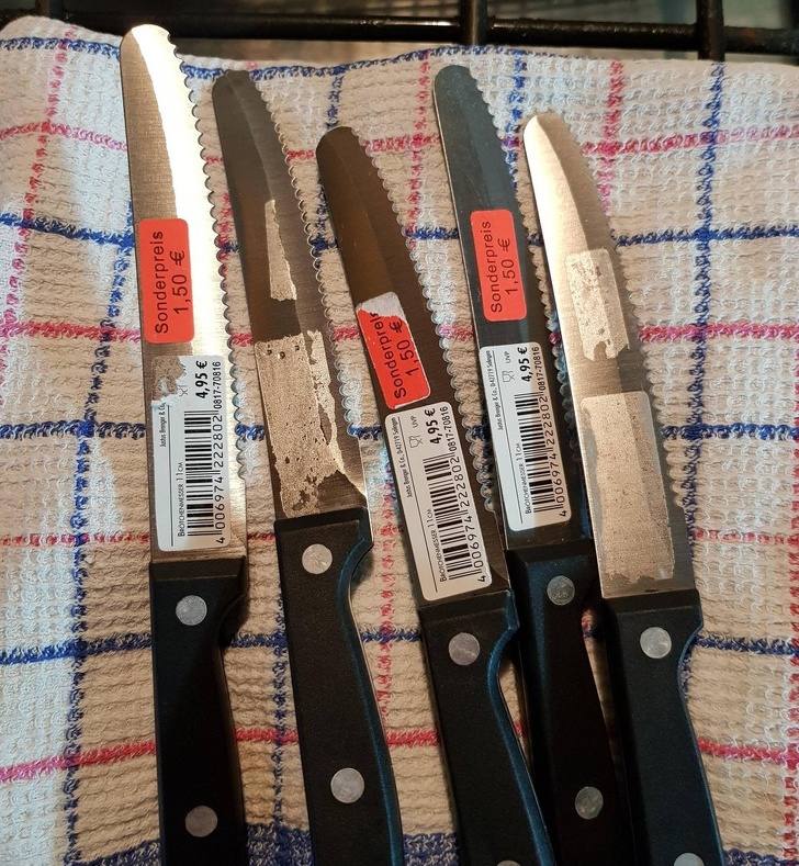Нові кухонні ножі з купою наклейок, які неможливо просто взяти і зняти
