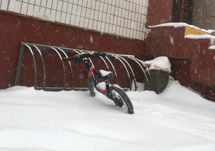 Для цього дитину снігопад — не привід сидіти вдома і відмовитися від катання на велосипеді