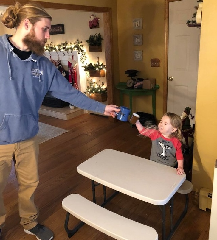 «Сфотографувала дочка з вилітають з носа шоколадним молоком, коли вона чокалась з татом чашками»