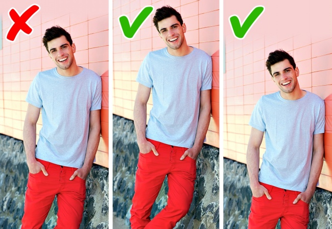 - У позі має бути поменше прямих ліній — було б чудово, якби ваш друг схрестив ноги або зігнув руки.