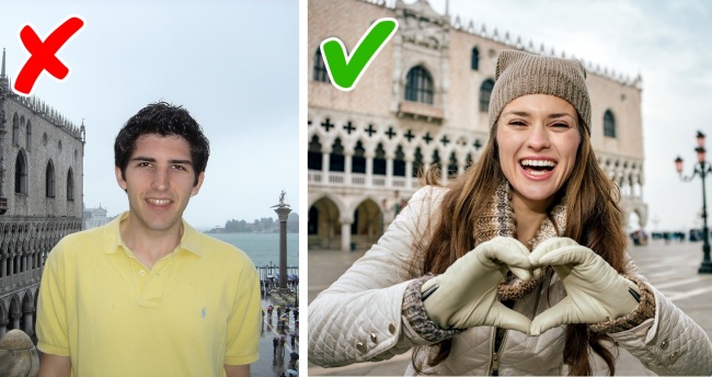 - Взагалі, якщо ви знімаєте природу або місто, радимо додавати в кадр людей, вони додають жвавості. Ще хороший варіант — фотографувати місцевих. Але як це зробити, якщо ви соромитеся питати дозволу? Спробуйте поставити друга поруч з місцевими і прикиньтеся, що фотографуєте його. Або зробіть вигляд, що слухаєте музику в навушниках, а самі знімайте на мобільник.