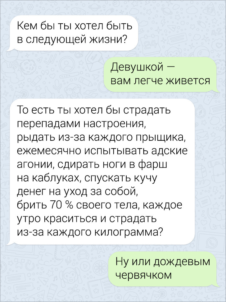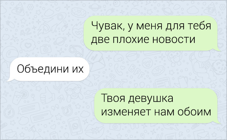 У своєму оточенні вам навряд чи вдасться знайти людину, який би не користувався месенджером. Хоча б одним. У кожному такому додатку ми ведемо жваві діалоги з друзями, родичами або колегами. І це просто ідеальне поле для тренування дотепності, адже іноді в діалозі трапляються такі курйозні повороти, що навмисне не придумаєш.