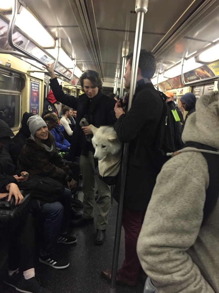 Кілька років тому в Нью-Йорку був прийнятий закон, згідно з яким собак в метро можна перевозити тільки в одному випадку — якщо вони знаходяться в спеціальній перенесенні для тварин або сумці. Для господарів маленьких песиків нічого не змінилося, адже для такої породи, як, наприклад, чихуахуа, сумка — це другий дім. А як вчинили власники середніх і великих за розміром собак?