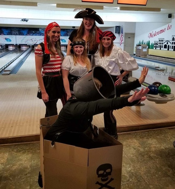«Дружина пішла на благодійний боулінг в піратському стилі, але вирішила, що не хоче одягатися як піратка, щоб не бути як всі. Вона вибрала костюм гармати»