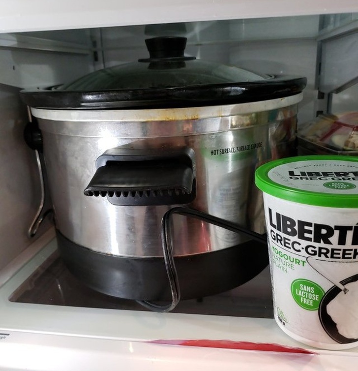 4. «Попросила чоловіка прибрати в холодильник вечерю, а він засунув туди всю мультиварку повністю»