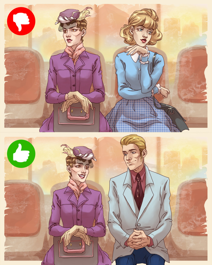 - У громадському транспорті не сідайте разом з жінками, займайте місце поруч з чоловіком.