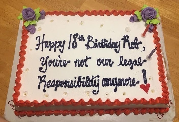 «Торт від батьків: „Роб, вітаємо тебе з 18-річчям. Наша юридична відповідальність за тебе закінчилася“»