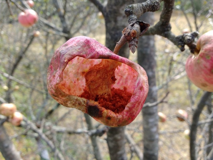 Яблуко, яке зсередини з'їли оси