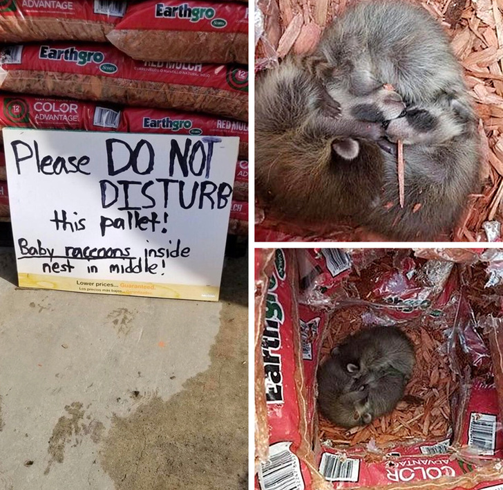 «Будь ласка, не рухайте цей піддон! Там всередині гніздо з малюками-єнотами».