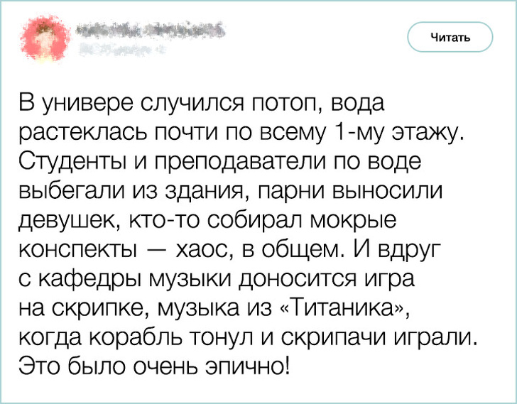 Студентство — не тільки найскладніша, але і найвеселіша пора життя. Наприклад, що може бути эпичнее, ніж музика з фільму «Титанік», яка звучить із затопленого гуртожитку?