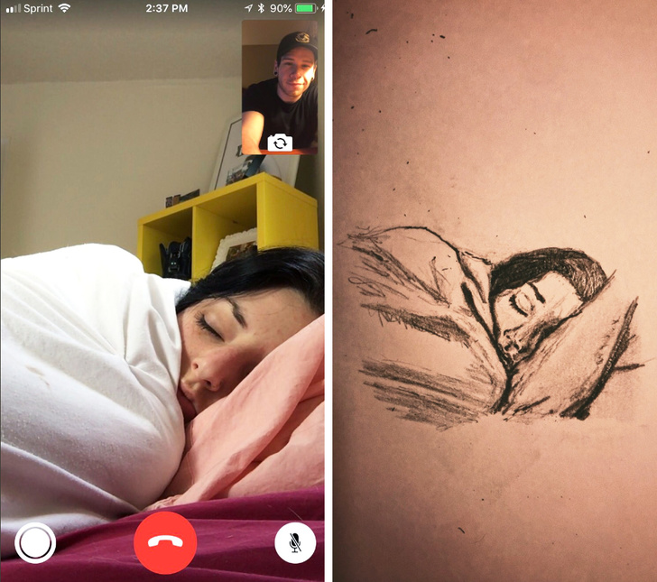 «Вона заснула, коли ми розмовляли по FaceTime, так що я просто малював її портрет до тих пір, поки вона не прокинулася. Їй потрібен був сон, а мені — натхнення»