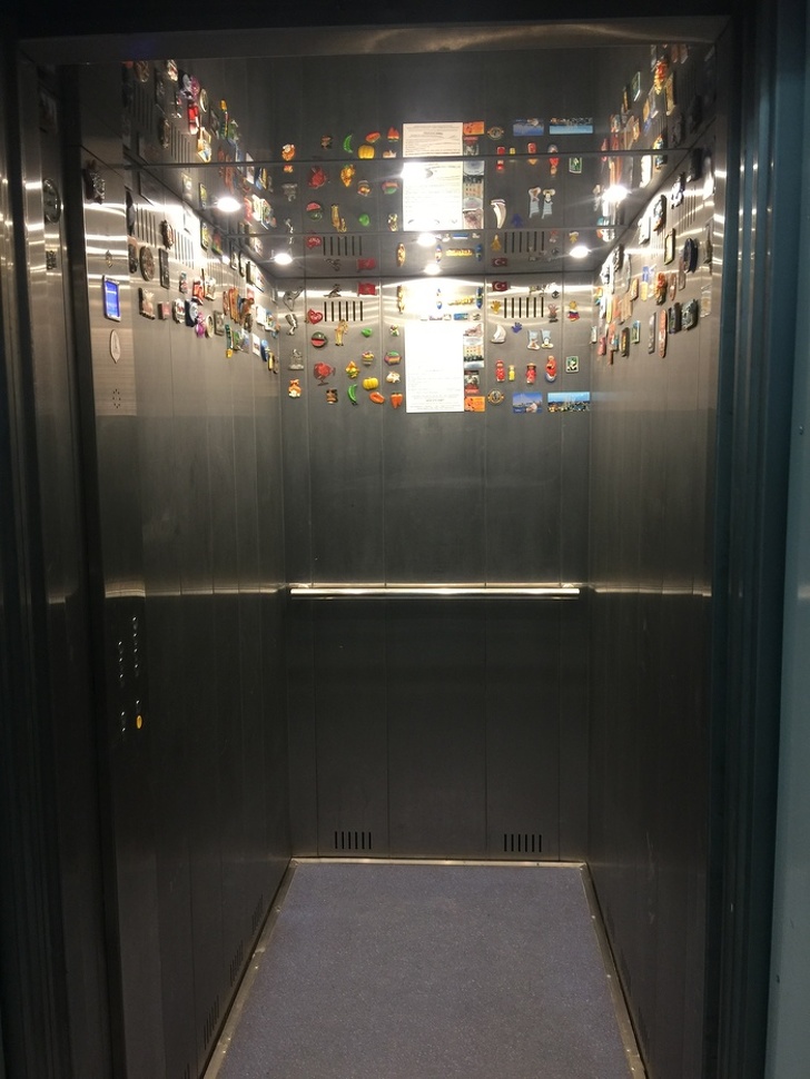 18. Ліфт у під'їзді, де живуть люди багато подорожують. Мабуть, холодильники вже закінчилися