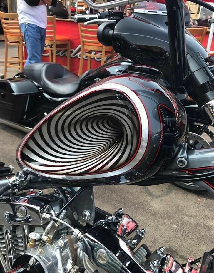 Малюнок на баку мотоцикла, який ламає зір
