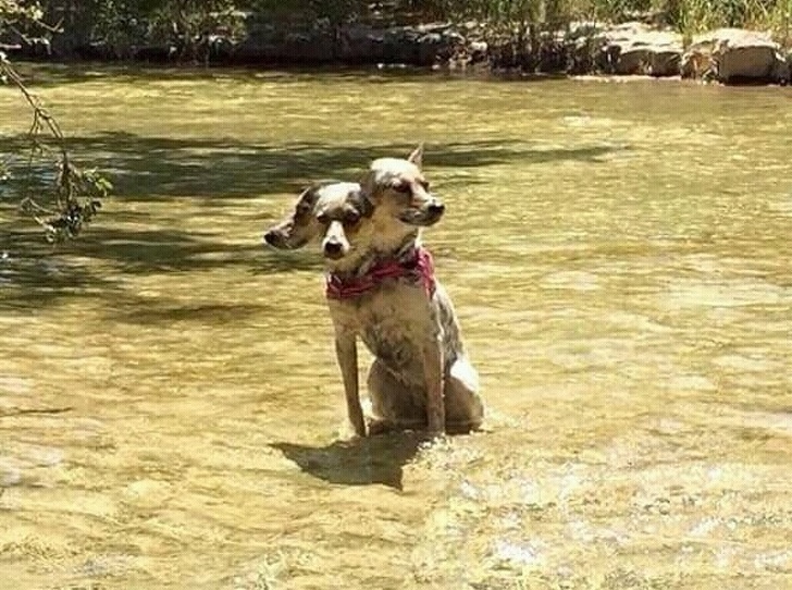 Пес повернув голову, поки господар робив панорамний знімок, і тепер він Цербер