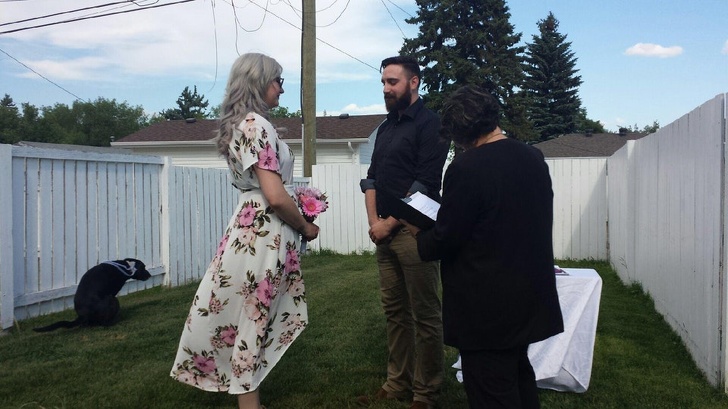 «Цього літа ми з чоловіком одружилися на нашому задньому дворі. Ось моє улюблене фото цього знаменного дня»