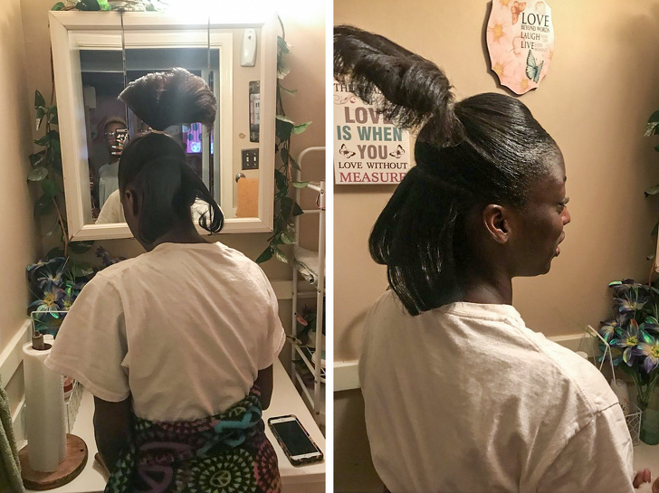 «Я вирішила зробити автозагар в салоні до дня народження, але занадто низько наділа сіточку для волосся. Ось „чудовий“ результат»