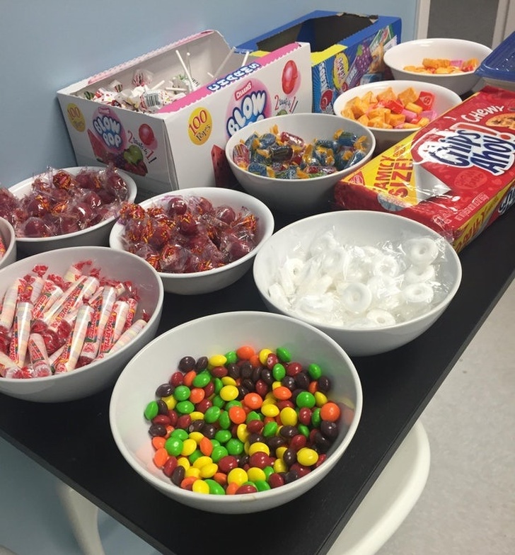 «В нашій кімнаті відпочинку на роботі є чашки для солодощів. Я приніс M&Ms»