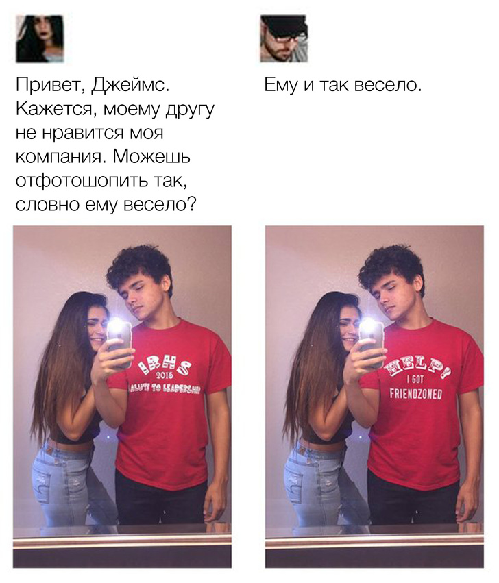 Напис на футболці на фото праворуч: «Допоможіть, я потрапив у френдзону».