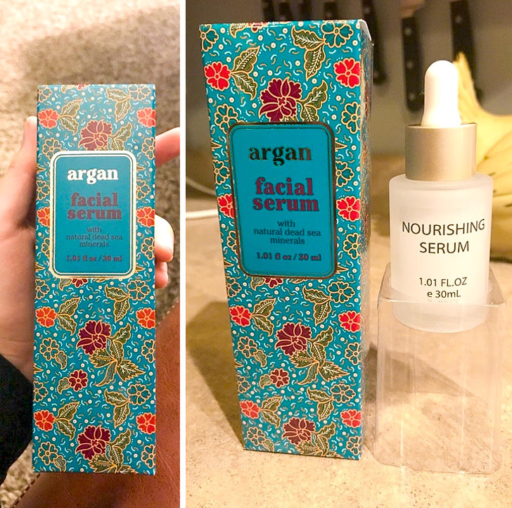 «Величина флакона і фактичний обсяг. Побачити, що він напівпорожній, можна тільки при особливому освітленні»
